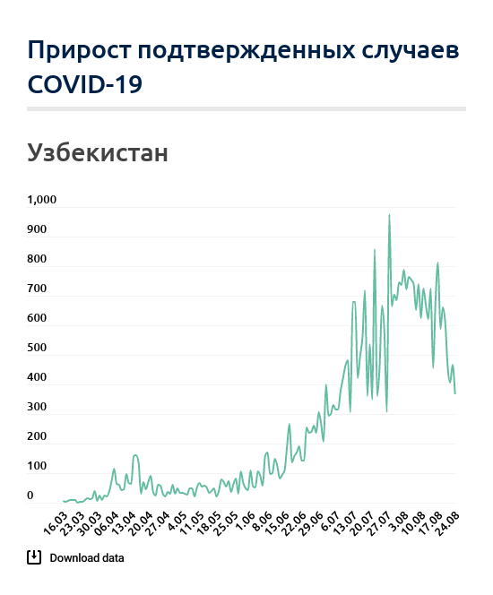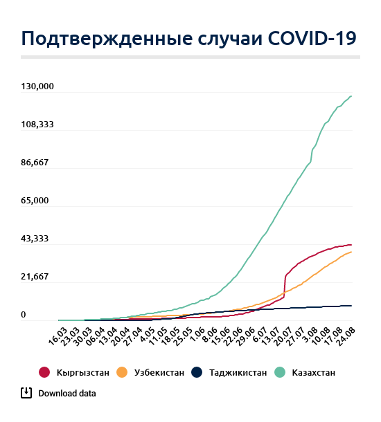 Целый набор строгих административных мер помог повернуть статистику в правильное русло и избежать более масштабной проблемы в многонаселенном Узбекистане (здесь число общих заражений все еще меньше, чем в Казахстане и Кыргызстане, где, впрочем, добавляют в статистику случаи пневмонии).