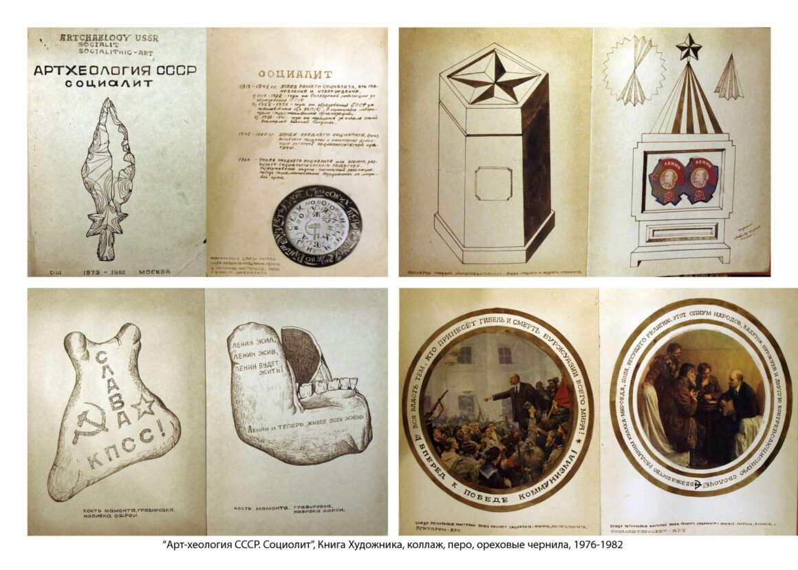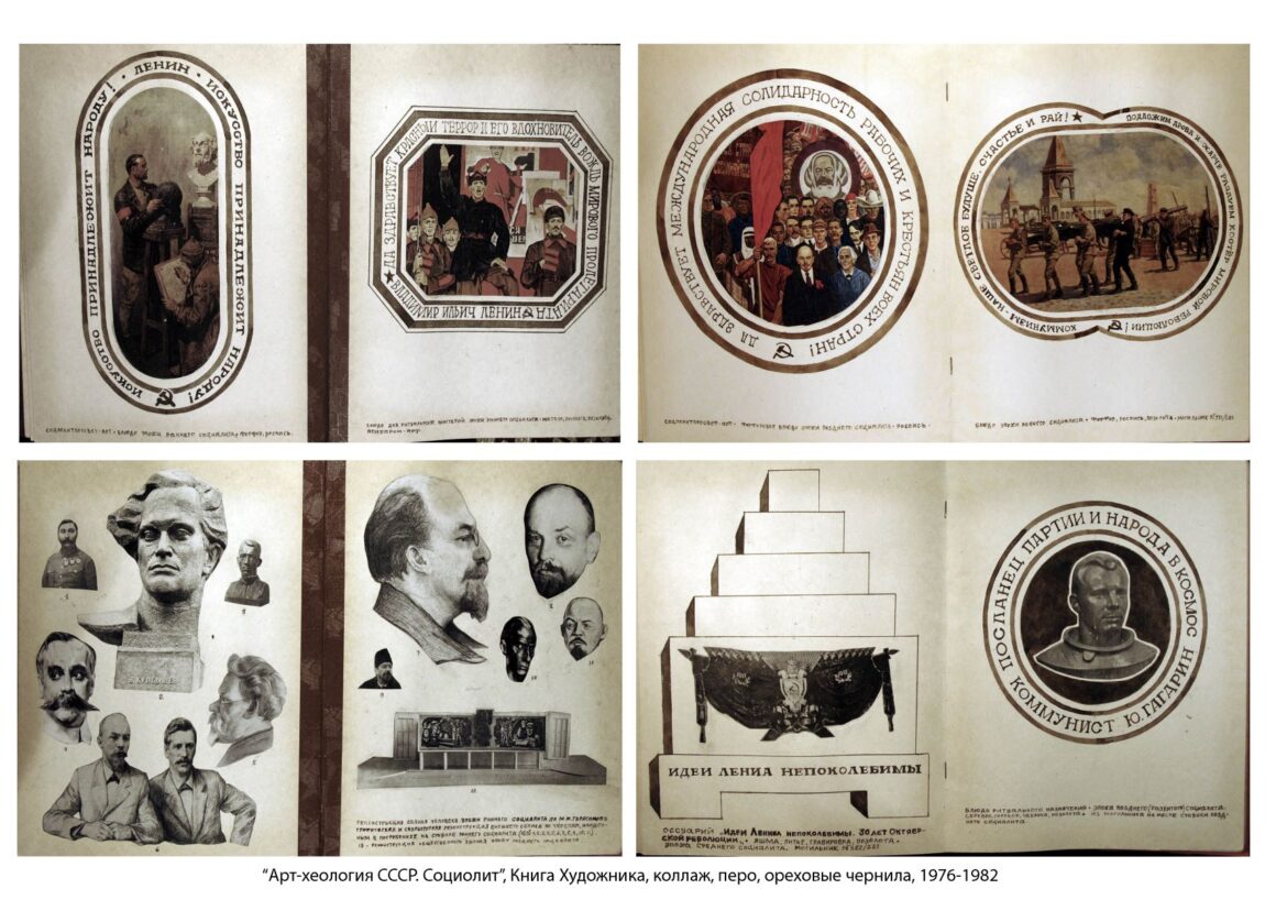 То, что я рисовал, коллажировал, записывал в самодельных книгах, являлось частью моей борьбы с советским режимом, с традицией, как она понималась в официальной, насаждаемой сверху марксистско-ленинской эстетике. Я освобождал свое сознание от этой традиции, от метода социалистического реализма с его неизбежной вторичностью и агитационно-пропагандистским культурным производством. Когда я начал раздумывать, что я делаю, это случилось на одном из первом проектов – Лениниана Вячеслава Ахунова, пришла идея, что необходимо делать упор на работы самых известных советских художников-соцреалистов. Затем взяв эту серийную печатную продукцию, иллюстрации, апроприировал результаты их труда. И когда пришло время понять, что же я делаю, то понял, – беру из модернизма формальности и соединяю их с дискурсом соцреализма. Сейчас многие стараются забыть, что советские художники имели чёткую идеологически обусловленную цель: помогать партии в перековке (колонизации) сознания народных масс с упором на местные особенности, то есть создавать на фоне активного «стирания» вековых традиций новую идентичность советского человека, строителя коммунизма. За несколько десятилетий выработалась социалистическая традиция в советском искусстве со своей иерархией. Забыли, как КГБ СССР пристально следила за деятельностью творческих общественных организаций, таких как Союз художников СССР, за поведением и работой художников. Именно в своих тетрадях, самодельных книгах и в записных книжках я рисовал и делал записи к рисункам. Пользуясь тем, что художественное высказывание метафорично, поэтому точнее и быстрее схватывает ощущение времени и легче ускользает от цензуры, было удобно таким образом архивировать их – в виде рисунка и записей, что было явным противопоставлением советской традиции, уже стагнирующей, тоталитарной, угнетающей, не современной. В общем, это были нонконформистские художественные позиции, которые боролись с тем советским в искусстве, что было противопоставлено западному искусству модернизма, и что в отличии от мирового мейстрима, превратилось в нечто оторванное от реального хода времени и нужд людей, в схематичный сухой партийный агитационно-пропагандистский язык советской идеологической машины, в сугубо узко-локальное, провинциальное, искаженное понимание искусства и национальных культур. Свое соединение художественных форм западного модернизма и нарратива социалистического реализма я назвал СОЦИАЛИСТИЧЕСКИМ МОДЕРНИЗМОМ. А почему бы нет? Потом, позже, в 80-х я услышал, что в Америке оказывается есть Соцарт. Но для меня Соцарт – это остроумно, но всё-таки оксюморон, не потому что произошло от Поп-арт, которого в СССР не было. Соцарт – что это? Социальный арт или социалистический арт? – Непонятно… А тогда, в конце 70-х, я решил, что будет хорошее название – Социалистический Модернизм. Вот так этот термин появился. На самом деле Социалистический модернизм не отрицает традицию социалистического реализма и сам метод социалистического реализма берет на вооружение то, что было создано художниками социалистического реализма, но переставляя акценты и меняя контексты идеологической составляющей, изымает саму основу – коммунистическую идеологию. В общем, социалистический модернизм можно смело назвать постсоциалистическим реа