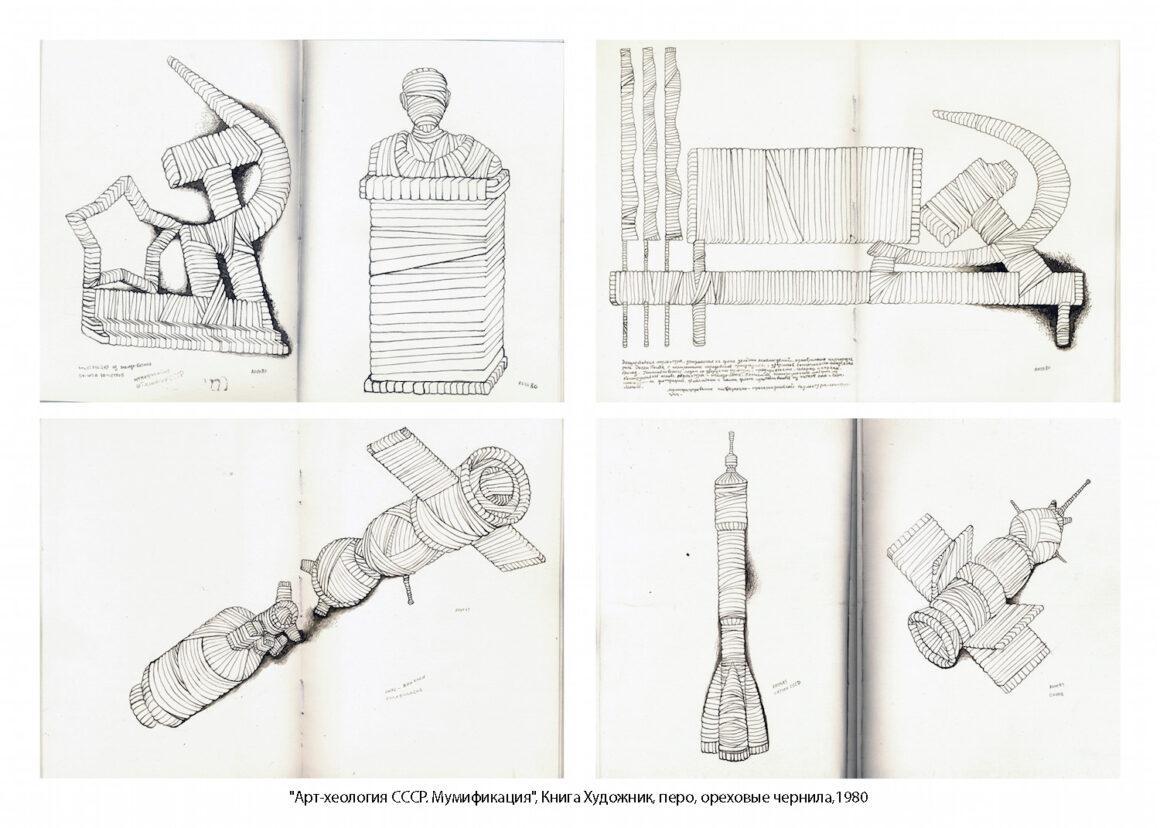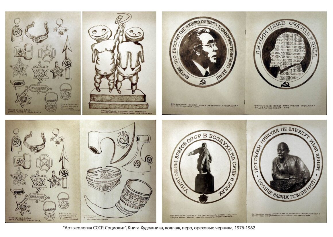 В отличии от футуристов, проектировавших светлое будущее, я как бы уже живу в будущем, в ХХХ веке, и работаю археологом. То есть я говорю как представитель, прибывший из будущего в настоящее, из еще не наступившего для обладающих футуристическим сознанием представителей ХХ века: «вот, смотрите, я отыскал те вещи, которые вас окружают, среди которых вы живете, то, чем вы обладаете… но эти, отслужившие свое вещи, найденные через тысячу лет… смотрите». Подобный ход позволяет обратить зрительское внимание на вещи, которые они перестали замечать в повседневной жизни, например, на свой общественный статус, быт, культуру, идеологическое окружение и так далее, считая сложившийся порядок вещей само собой разумеющимся. Взгляд «пришельца из будущего» вырывает вещи из привычного контекста, тем самым нарушая порядок вещей, заставляя рассматривать их иначе, с разных точек зрения. Взгляд «пришельца из будущего» – это взгляд со стороны, отдалённо примерно подобный взгляд как у приехавшего в СССР американского археолога, социолога, философа, пытающегося охватить реальность целиком и, одновременно в частностях. Мы тогда жили с привитой нам идеологической машиной фантастической утопией, с верой в грядущее светлое будущее, уже задавленные бесконечно повторяющимися идеологического характера мантрами-клише, но перестали замечать её существование. Благодаря художественному приему, – реконструкции настоящего в будущем, через тысячу лет – можно было увидеть общество и самого себя со стороны в настоящем реальном. Задачей художника, «арт-хеолога» была деконструкция сложившегося порядка вещей и реконструкция из фрагментов, оставшихся после деконструкции, новой парадоксальной реальности, выявляя, выделяя наиболее характерные, типические стороны жизни советского человека.