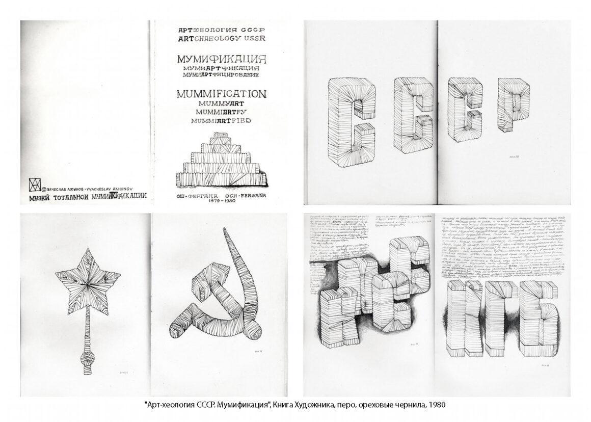 В середине 70-х мои проекты выглядели более оптимистичней. «Лениниана Вячеслава Ахунова», «Мухобойки», «Мантры СССР», «Красная линия партии», «Пустые постаменты», «Сомнение», «Выкройки», «Бюст Вождя». Но уже в то время предчувствие «Эпохи Забвения» пробивалось в рисунках, коллажах, живописи в образе пустыни с ребристыми дюнами и зыбучими, засасывающими песками. Фрагменты картин художников соцреализма и особо идейных художников со своими персональными «Ленинианами», в коллажах тех лет, неизменно перемещались в Пустыню Забвения, в Зыбучие Пески, как бы говоря «все не вечно, все не постоянно». И слово тонуло в Зыбучих Песках Забвения. Слово-символ, слово-образ, слово-знак, слово, замкнутое на само себя. А может быть вымывались ветрами перемен на поверхность пустыни или вызволялись из песков усердными «арт-хеологами», пока я занимался выявлением точек пересечений между производством идеологических штампов в советском искусстве и генеративным анализом высказываний идеологов коммунистической партии, пытался прояснить правила формаций идеологических концептов, виды их последовательностей, сцеплений и сосуществование порой противоречивых высказываний. В общем, пытался создать свой дискурс в современном искусстве.