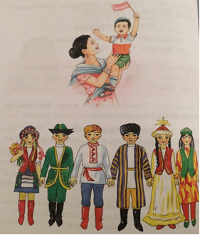 Первое, в букварях, а также в элиппе, было присутствие текстов, дающих представление о казахской культуре как государствообразующей. С одной стороны, можно понять стремление Казахстана построить «свое» государство. С другой – мультикультурализм в Казахстане очень глубок и было бы справедливо одинаково уважать права всех жителей, независимо от их этнической, языковой или культурной принадлежности. В данном контексте, сосредоточенность на одной этничности может выглядеть довольно однобокой и несправедливой по отношению к остальным гражданам, не принадлежащим к казахской этничности. Многочисленные стихотворения в учебниках говорили о том, что Казахстан – это земля Казахов (больше деталей и переводы конкретных стихотворений вы найдете в оригинале статьи, а также в базе данных диссертации ЕВSCOHOST). Национальные костюмы, орнамент, узоры демонстрировали выдуманную повседневную жизнь учеников, оставляя мало возможностей для иного видения детства и образа жизни.