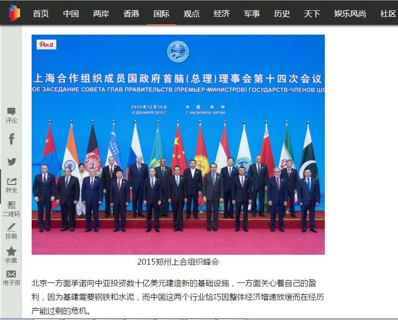 При этом есть и другие оценки. В конце уходящего года «Dwnews.com» публикует любопытный материал под названием «Запад намеренно раздувает российско-китайские противоречия в Центральной Азии» (挑拨中俄关系 西方夸大两国在中亚冲突). В последние полтора-два года Китай и Россия, похоже, нашли ключ к взаимовыгодному сотрудничеству в Центральной Азии. Сегодня, судя по некоторым действиям Москвы и Пекина, эти две державы договорились «о разделении труда» в Центральной Азии. Но данное обстоятельство, по мнению авторов материала, не устраивает западные страны, которые всячески раздувают имеющиеся между Россией и Китаем разногласия. Так, в статье приводятся мнения ряда европейских специалистов, которые усматривают в действиях Пекина по созданию АБИИ и в инициировании ЭПШП явное стремление занять доминирующие позиции в Центральной Азии.