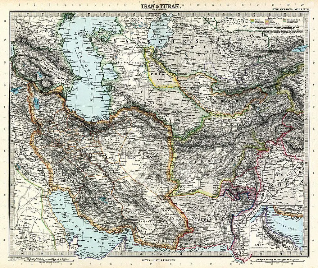 Фото: Map of Iran and Turan in Qajar dynasty drawn by Adolf Stieler
