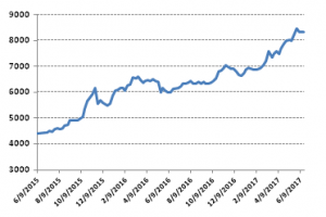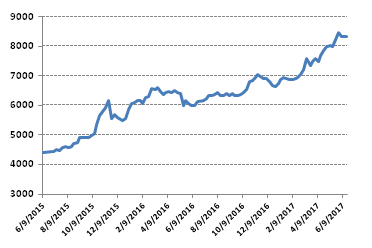 Вне зависимости от того, какие могли бы быть ответы на эти вопросы, мы уже видим реакцию «черного» рынка: в декабре 2016 года средневзвешенный курс доллара США к узбекскому суму составлял 6750 сумов за 1 доллар США, а в июне 2017 года уже 8330 сумов, то есть сум обесценился на 23,4% (см. рис. 1).