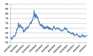 За последние два года подобные «скачки» обменного курса за столь короткий период уже случались. Как видно на графике, такой же «крутой подъем» курса доллара к суму, который наблюдается с начала 2017 года по настоящее время, случался в период с июня 2015 года до конца февраля 2016 года. Основными факторами, повлиявшими на такой скачок курса доллара к суму, являются девальвация российского рубля и казахстанского тенге. В период с июня 2015 года по конец января 2016 года девальвация российского рубля составила около 56%, а казахстанского тенге – около 90% (см. рис. 2, 3).
