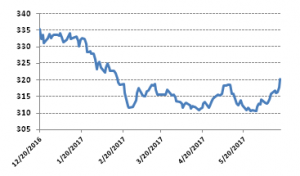 Рис. 3. Динамика курса доллара США к казахстанскому тенге